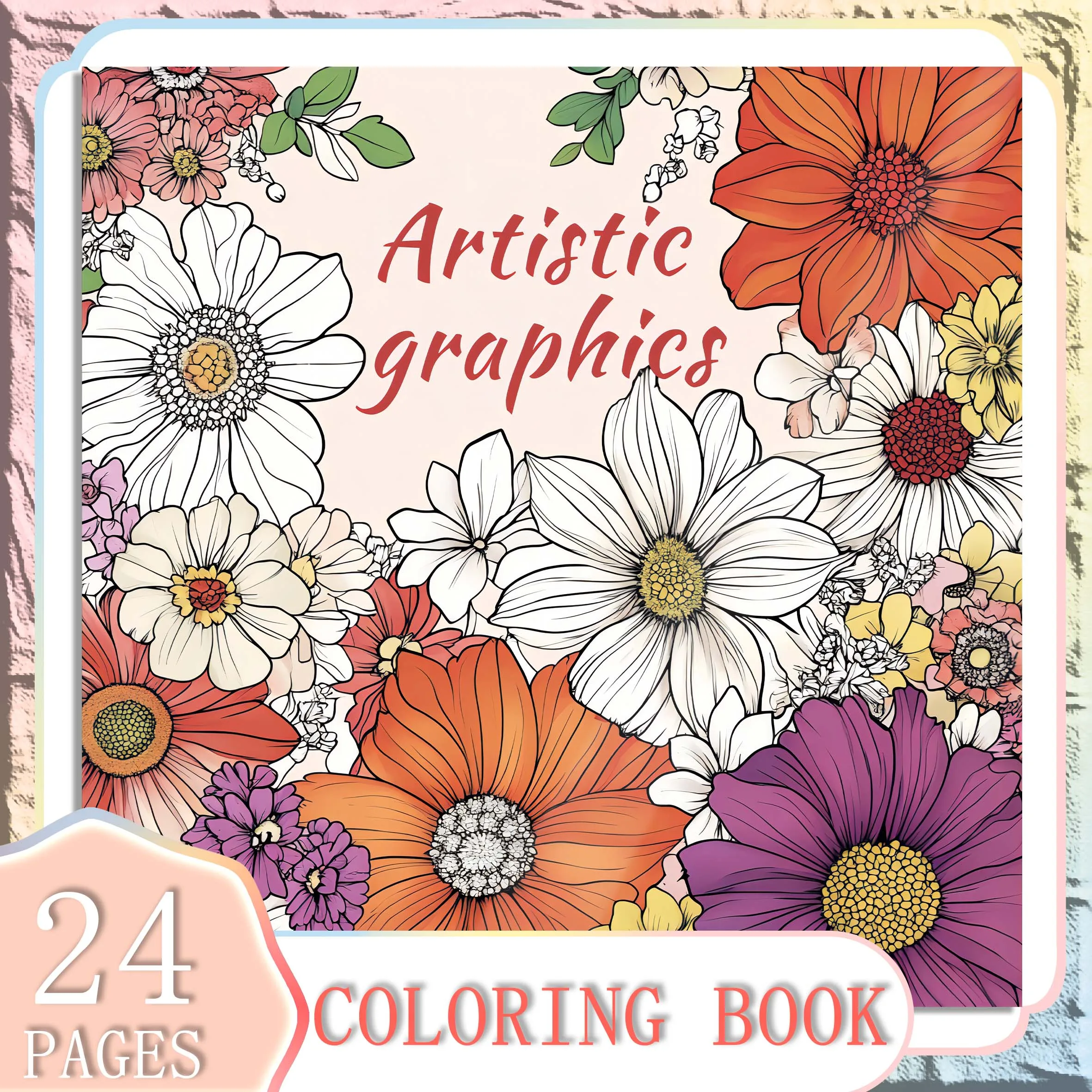 1pc Art Coloring Book 24Page Artistic Graphics Flower For Birthday Party Relieve Stress Kill Time Graffiti Painting Drawing Book