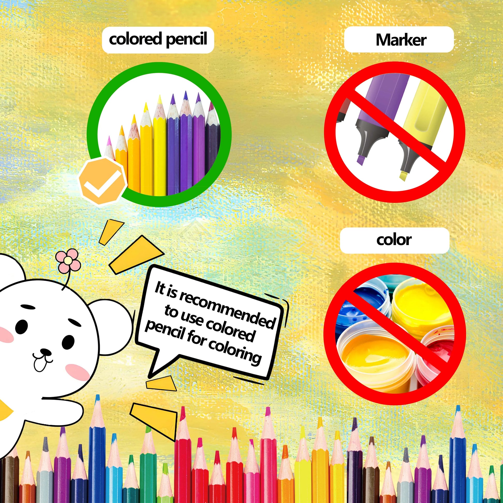 Drawing tool: colored pencil (but not included)