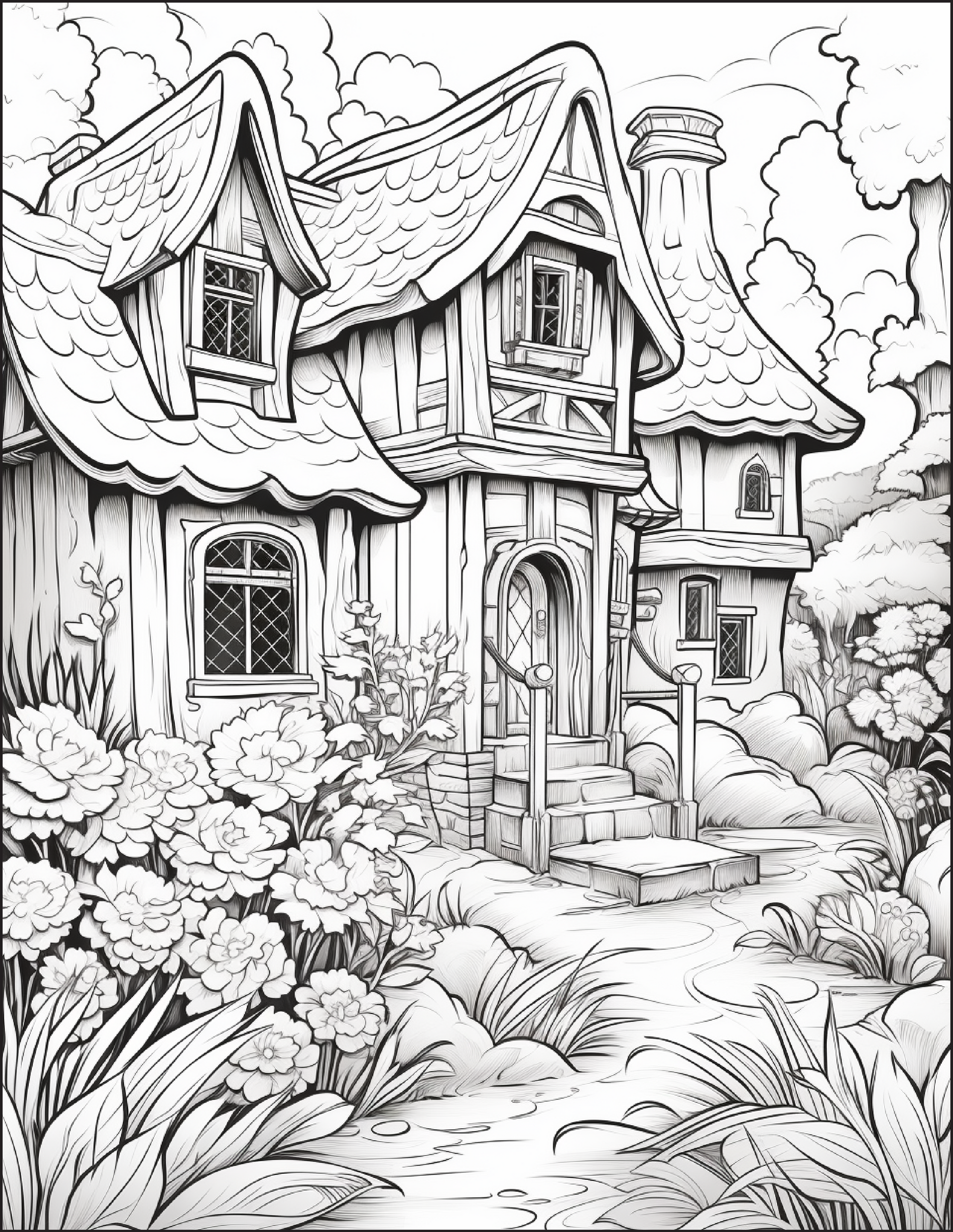 200 unique cottage garden colouring pages