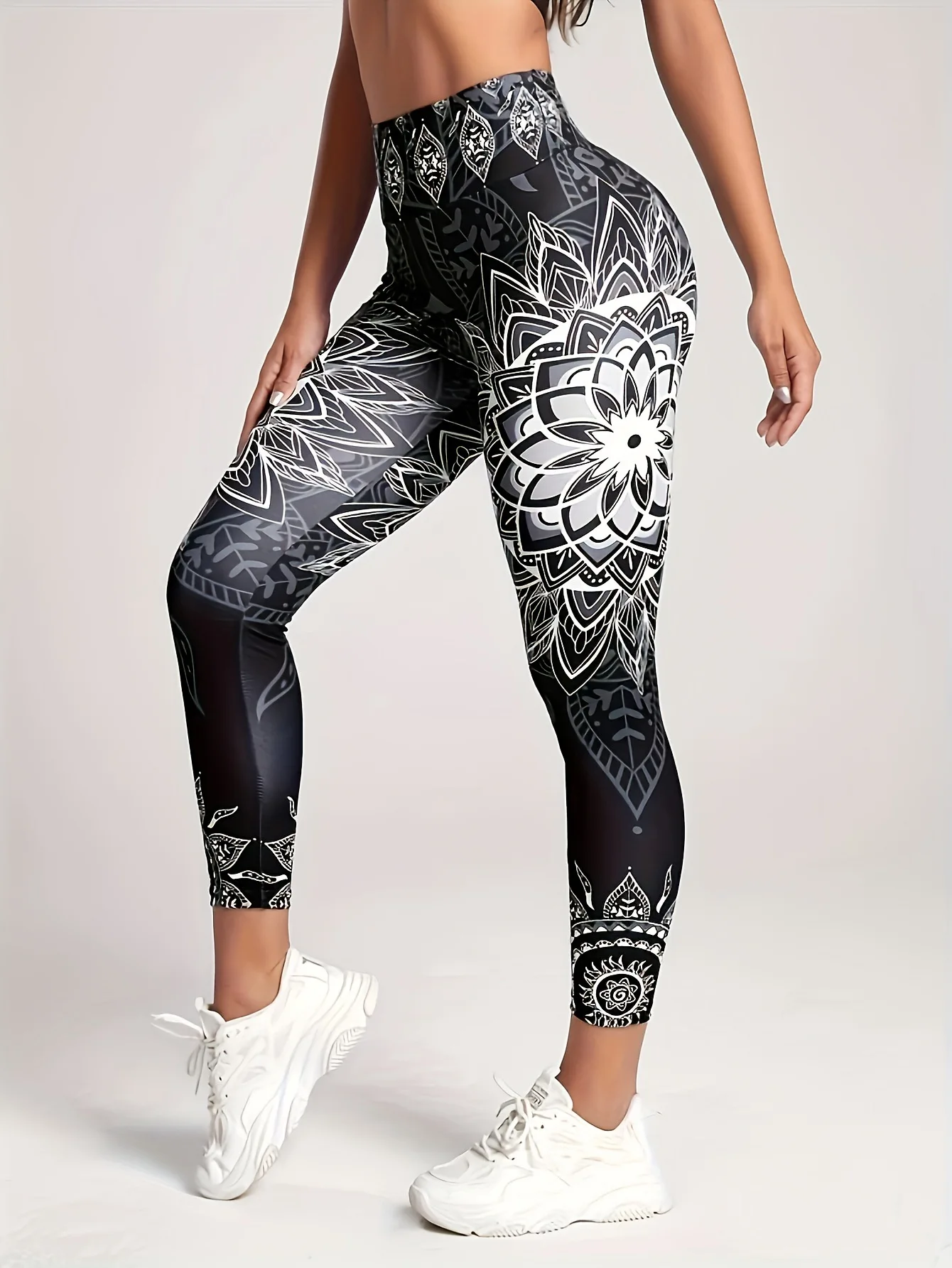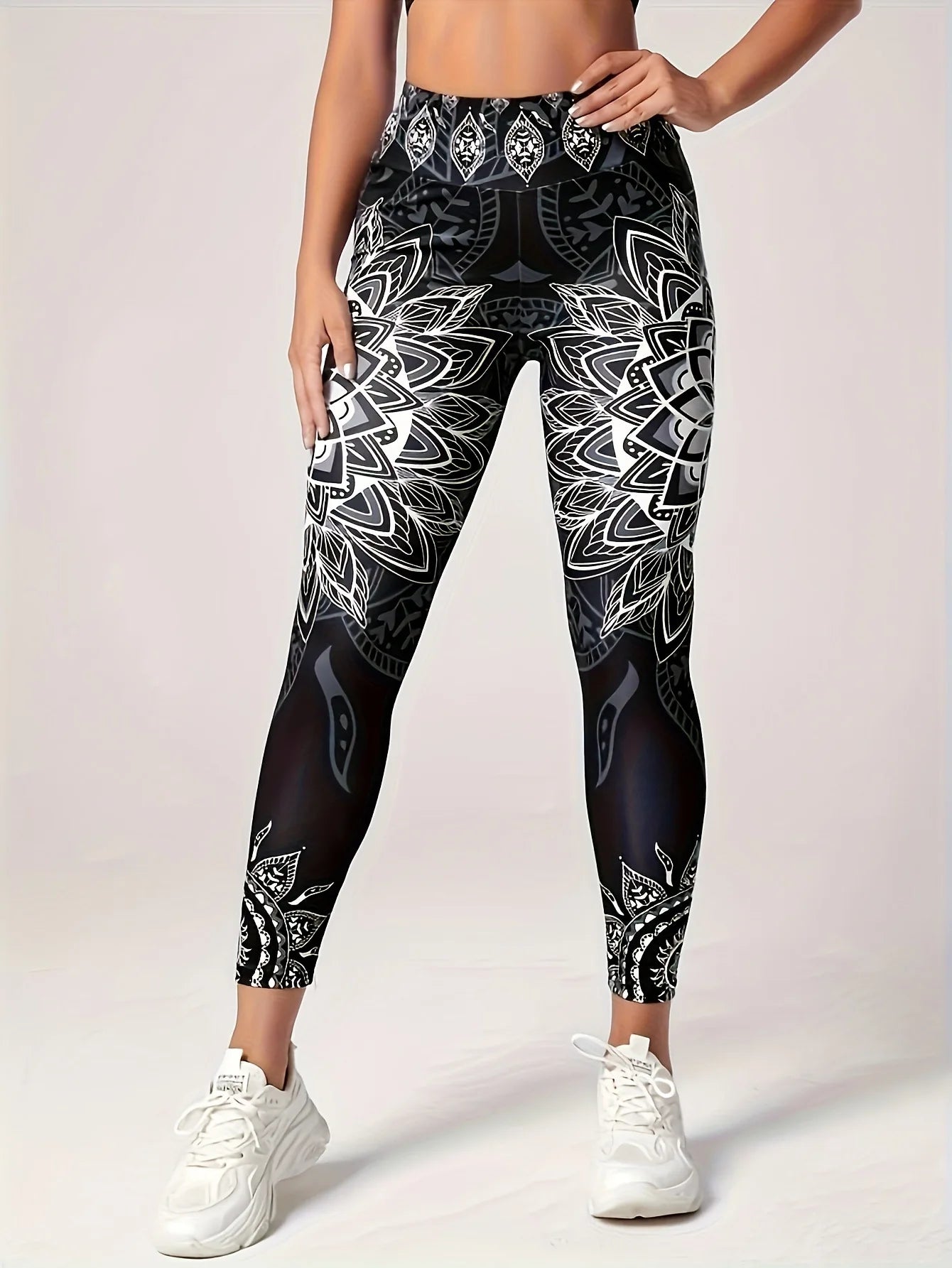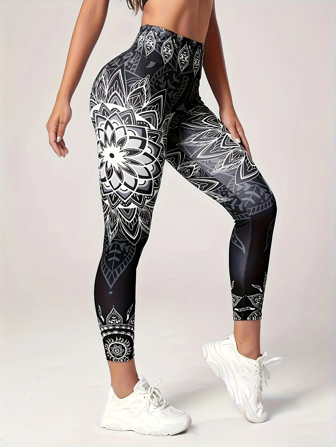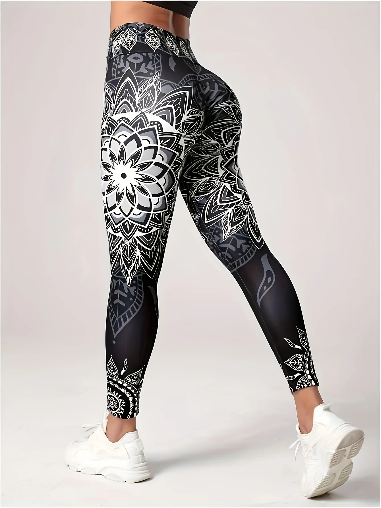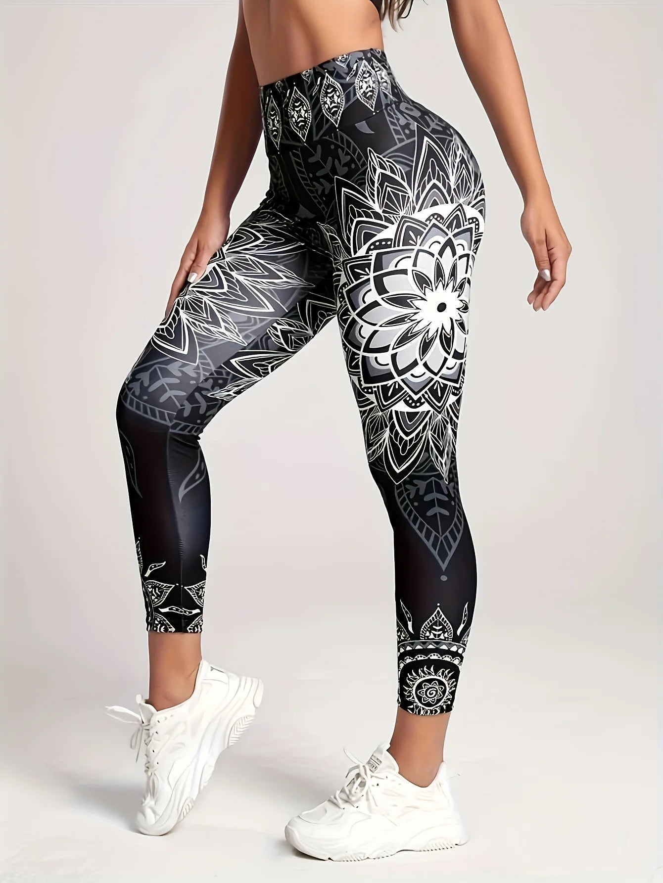 The ink-wash lotus print adds a touch of elegance and nature to these yoga pants, making them a stylish choice for your workout.